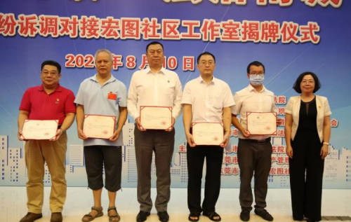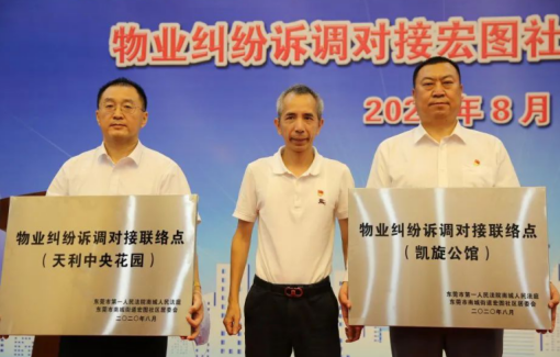 2020年8月10日下午,南城法庭、南城房管所与南城街道宏图社区联合建立的“诉调对接”工作室举行了揭牌授匾仪式。该物业纠纷诉调对接工作室,旨在探索物业纠纷“小事不出小区,大事不出镇街,矛盾不上交”的新时代“枫桥经验”南城样本。